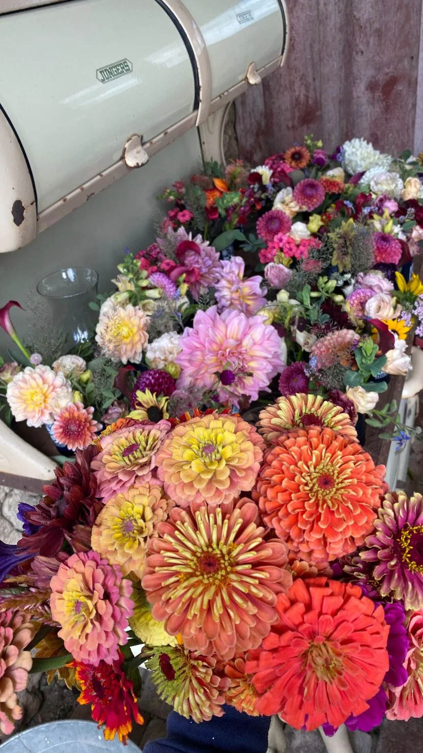 Bouquet Bars are relaxing and unique way to spend quality time with friends and family. Fresh cut garden flowers are harvested and elegantly displayed in our hand crafted timber frame shed in our garden, ready to be made into beautiful bouquets. Choose between a bouquet bar hosted on our farm, a bouquet bar delivered to your next event, or a DIY flower bar.